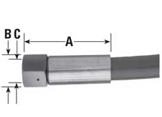 型號 | 最大工作壓力 | 末端接口 | "A" 接頭長度 | "B" 接頭外徑 | "C" 軟管內(nèi)徑 |