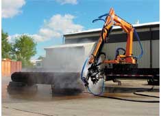 NLB有兩種換熱器外殼自動清洗機,機械手自動移動噴嘴從換熱器管道頭部到尾部,剝離堅固的殘渣。都是拖車式的,帶一個液壓機構(gòu)定位噴水頭,可清洗管束的長度可達25 英尺長(7.6m)。液壓驅(qū)動滾筒轉(zhuǎn)動管束, 以保證徹底清潔,這樣也簡化了管束的裝卸。當清洗第一個管束的時候, NLB SSC9200A允許擺放好第二個管束。這樣可以使清洗效率增加一倍。經(jīng)濟型的NLB SSC 8900A一次只能清洗一個管束。